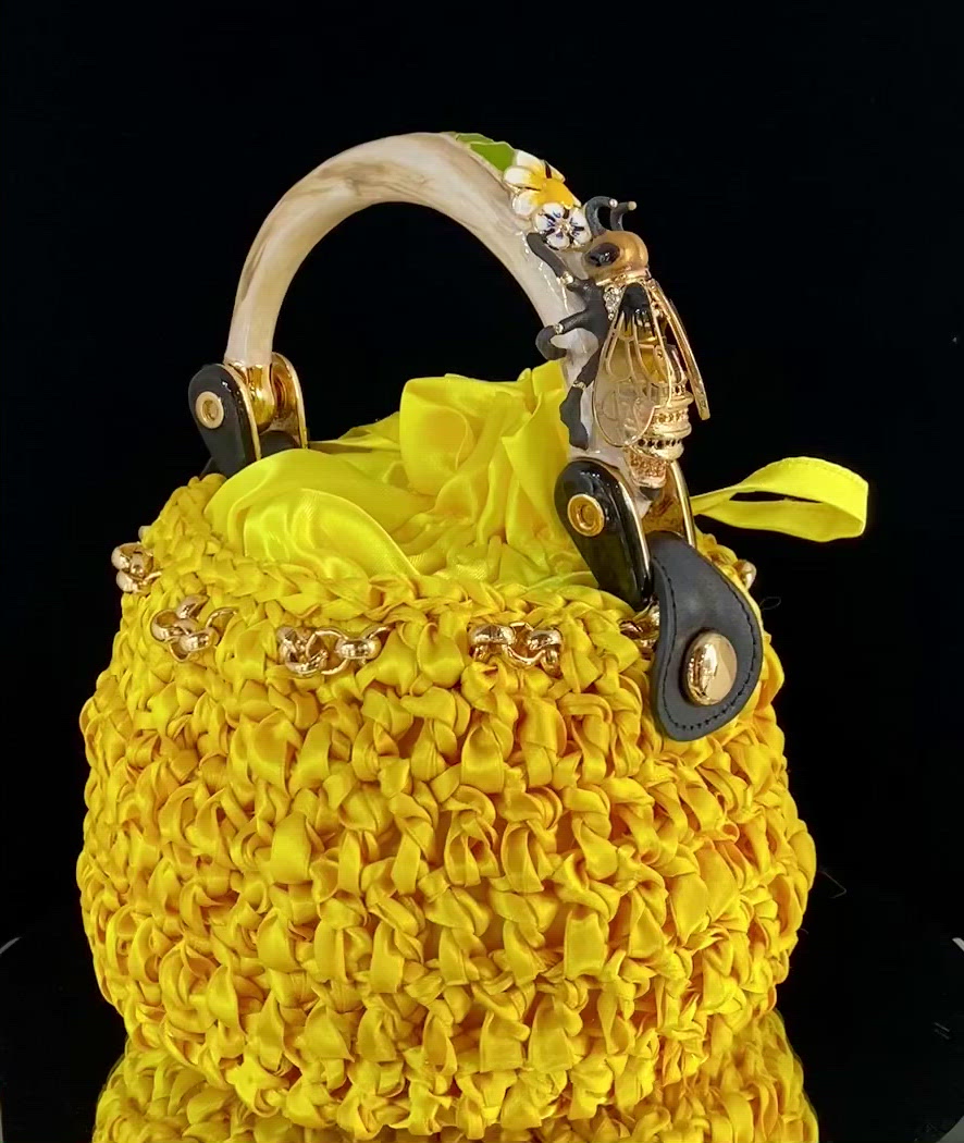 Precioso bolso made in Italy con preciosos accesorios realizados en esmaltes policromados, cada bolso es el resultado de una precisa fabricación artesanal que lo hace único.